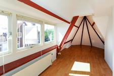 Dit royale bovenhuis ligt aan een aantrekkelijk, rustig gelegen pleintje en heeft een bijzondere plattegrond. Het is verdeeld op drie woonlagen, heeft vijf slaapkamers, twee badkamers, twee balkons, beschikt over een dakterras en kan beschikken over een voortuin (in nader overleg te huur).