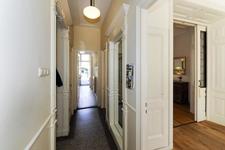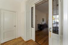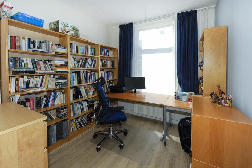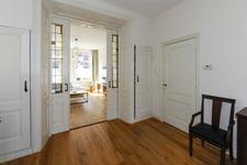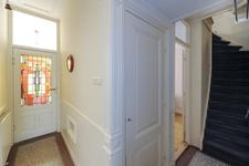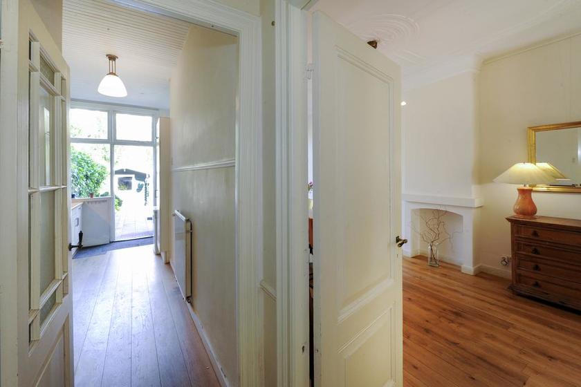 BEGANE GROND: voordeur, vestibule, tochtdeur, gang met gangkast voorzien van de elektrische installatie (10 voorzieningen met aardlekschakelaar), modern betegelde wc met fontein. Voorkamer (circa 540x365) en suite met de royale achterkamer (circa 750x365). Vloerdecoratie: eikenhouten vloerdelen. Plafondhoogte: 3.14 meter. De achterkamer heeft openslaande deuren naar de achtertuin.