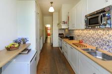 De keukenruimte heeft een vaste kast met opstelplaats voor de wasmachine en –droger en is ingericht met een keukenopstelling met diverse inbouwapparatuur en een close-in boiler.