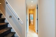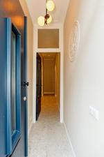 Voordeur, vestibule, vestibuledeur, gang met de meterkast en de wc-ruimte met fontein.
