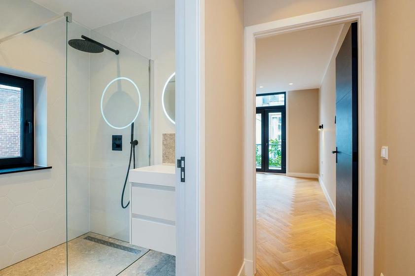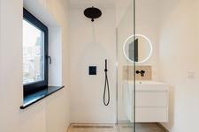 UITBOUW EERSTE VERDIEPING Overloop. Goed formaat SLAAPKAMER 3 met openslaande deuren naar het balkon (noordwest). BADKAMER 2 met een inloopdouche, wastafelmeubel met spiegel en een wandcloset.