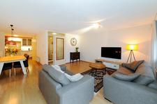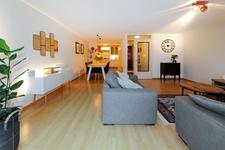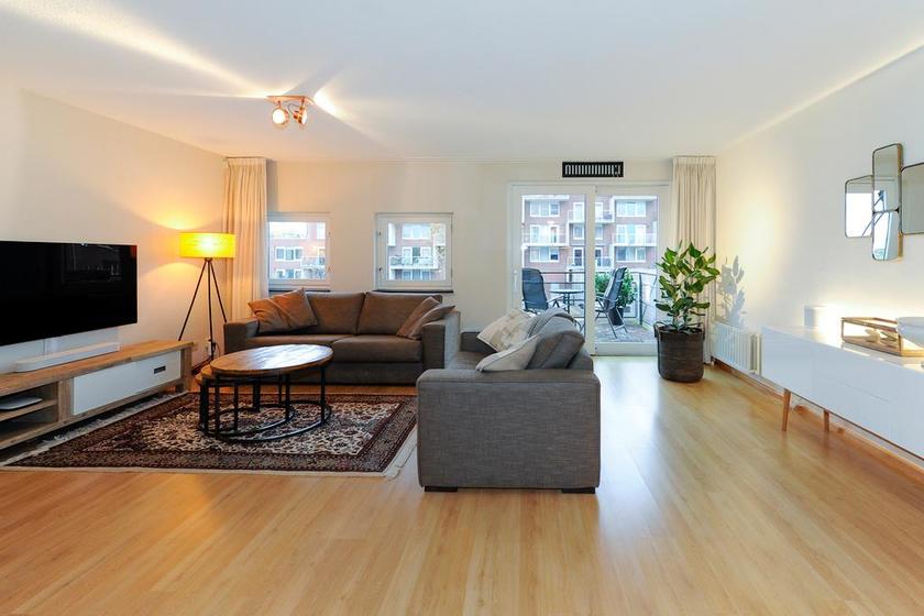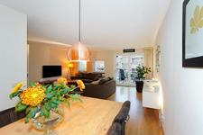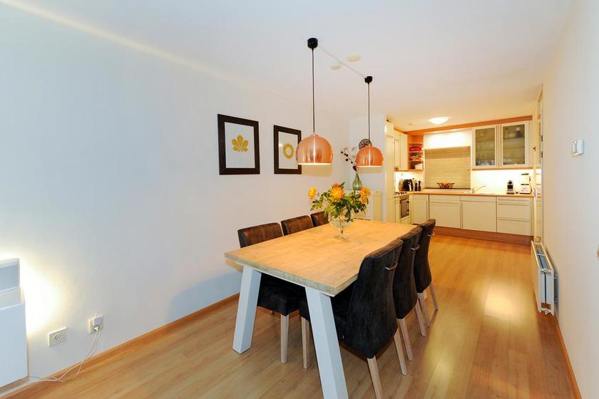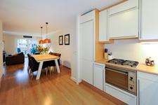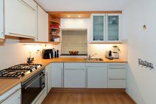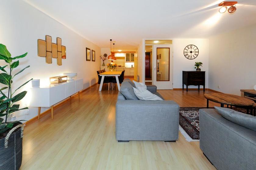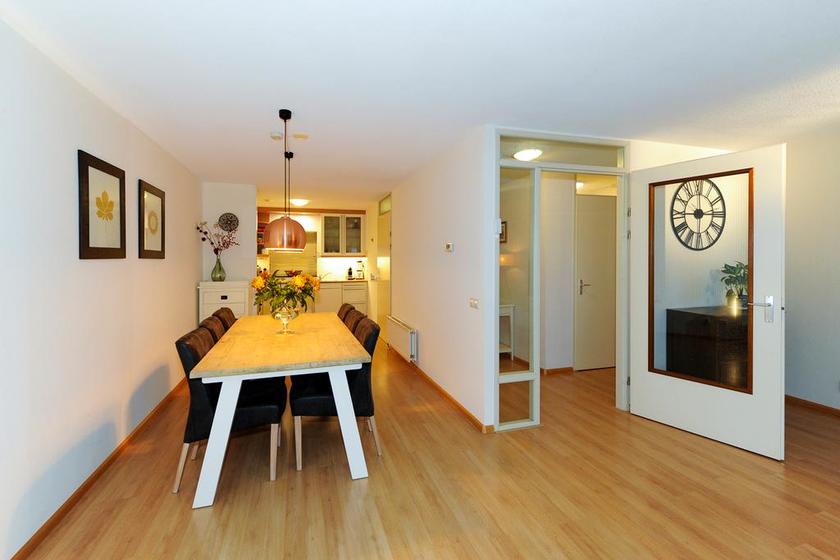 Royale L-vormige zit-/eetkamer met een schuifpui naar een goed formaat BALKON. Het balkon ligt op het westen. Een fijne plek om te genieten van de middag- en avondzon. De keuken is in open verbinding met de eetkamer. De L-vormige keukenopstelling is voorzien van een (inbouw-)vaatwasser, ijs-/vrieskast, combimagnetron, 4-pitsgastel en ventilatiekap.