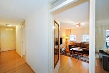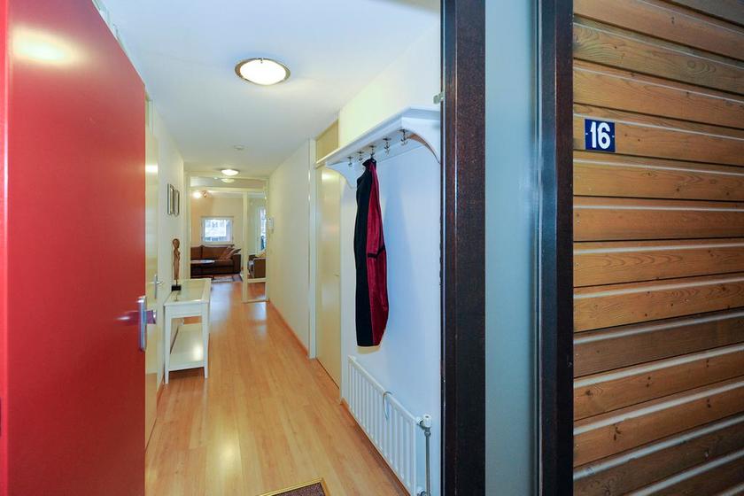 Ruime L-vormige hal met meterkast, inpandige berging (met opstelplaats van de Cv-ketel, unit mechanische ventilatie en wasmachineaansluiting) en een modern betegelde wc-ruimte met fontein.