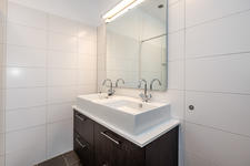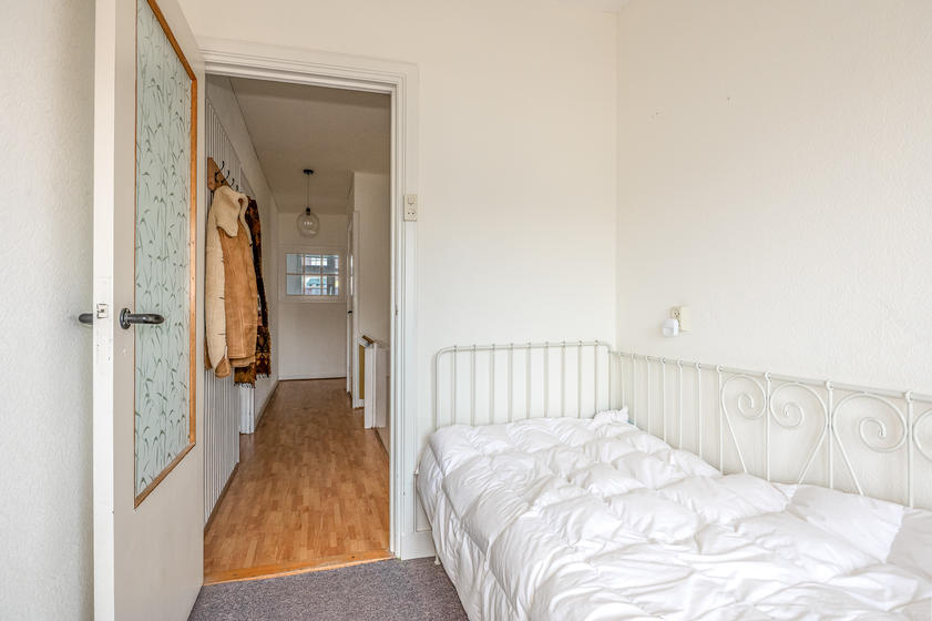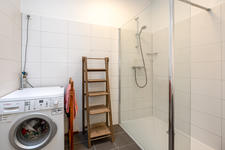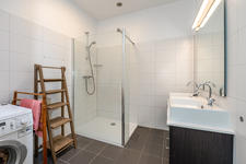 Aan de straatzijde: twee slaapkamers. Aan de achterzijde een zeer ruime slaapkamer 3. De tussenliggende badkamer is ingericht met een inloopdouche, een dubbele wastafel met meubel en de wasmachineaansluiting.
