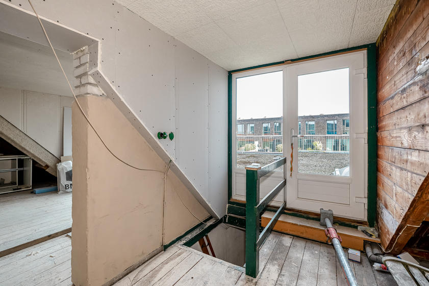 BEGANE GROND Voordeur, halletje met meterkast, binnentrap naar woonlaag.
