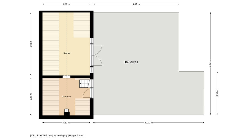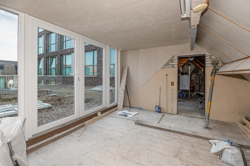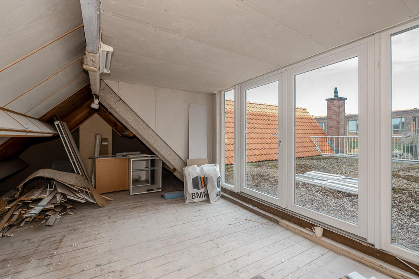 KAPVERDIEPING De zolderverdieping heeft een ruime overloop en een (slaap)kamer met dakkapel met openslaande deuren naar het dakterras.
