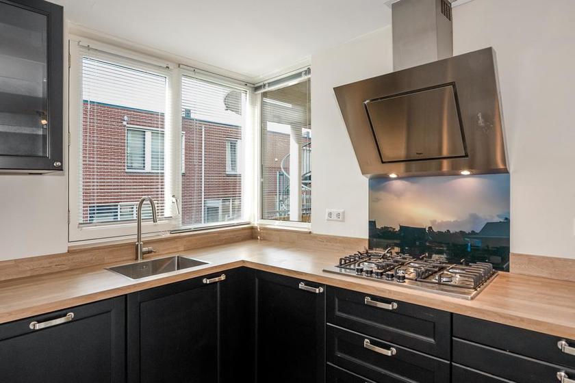 WOONKAMER MET SERRE De zit-/eetkamer is ingericht met een mooie L-vormige keukenopstelling (2015) met een (inbouw-)vaatwasser, combimagnetron, oven en 5-pits gasstel met wasemkap. De vijfhoekige serre biedt een fantastisch zicht op zuidoost Den Haag en vangt volop ochtend- en middagzon.