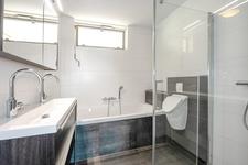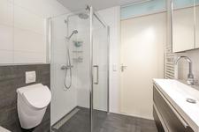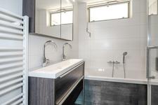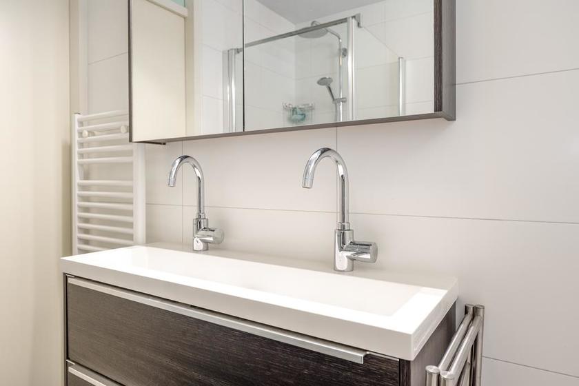BADKAMER De badkamer (2015) grenst aan de gaanderij, kan goed worden geventileerd en is modern ingericht met een ligbad, urinoir, inloopdouche met een regendouchekop, meubel met een tweepersoons-wastafel, een spiegelkast en designradiator.