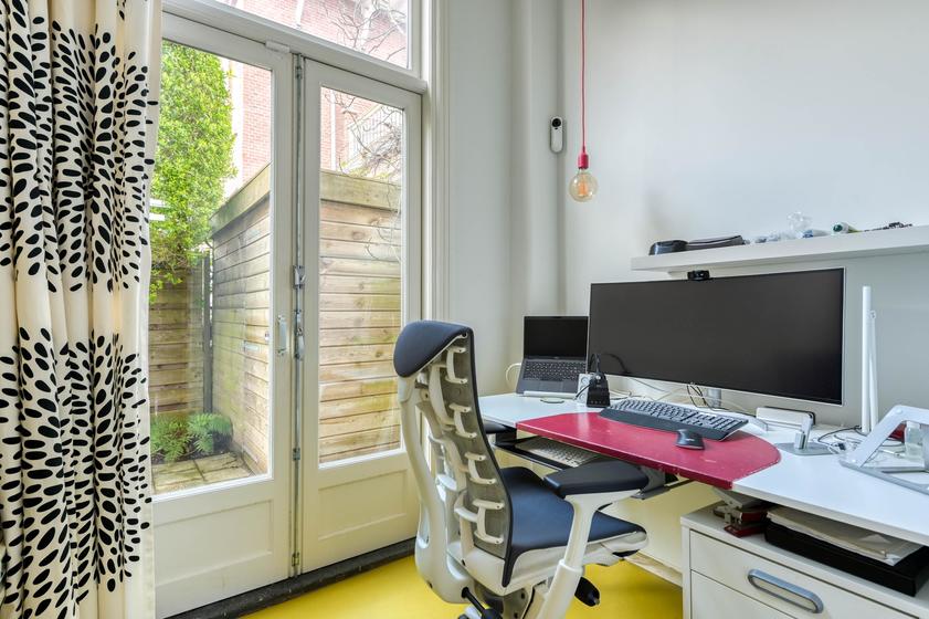 De als werkkamer ingerichte ruimte heeft eveneens toegang tot de tuin.