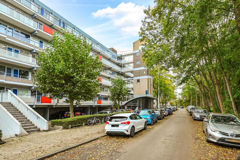 Een ruim en bijzonder licht appartement (ca. 85 m2) op de vijfde etage van een goed onderhouden wooncomplex (1976), met drie slaapkamers, een groot balkon (ca. 12 m2) en een berging in de onderbouw.