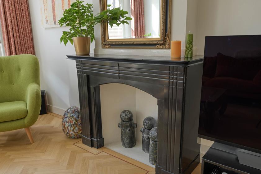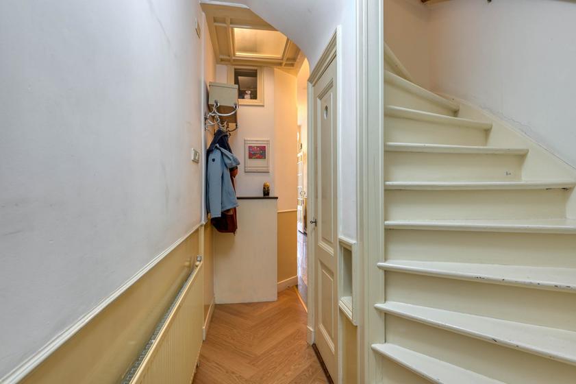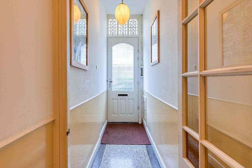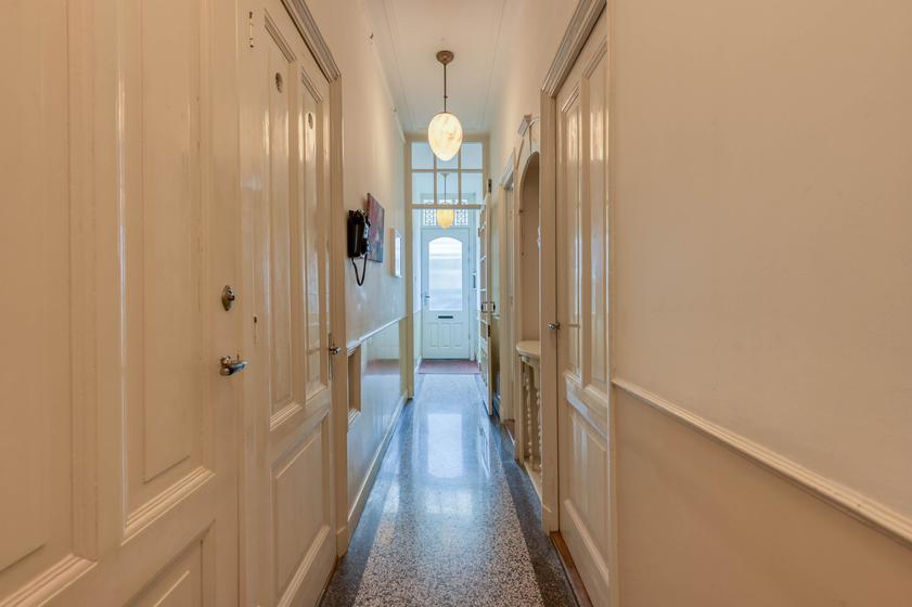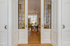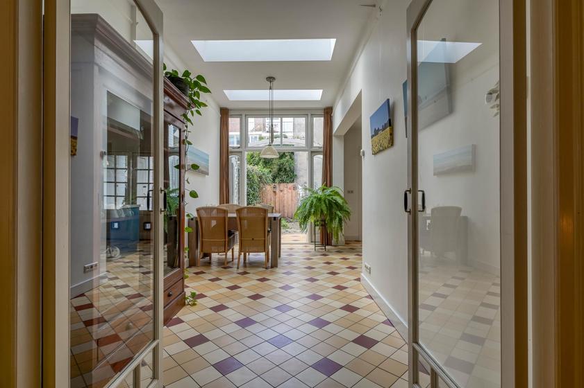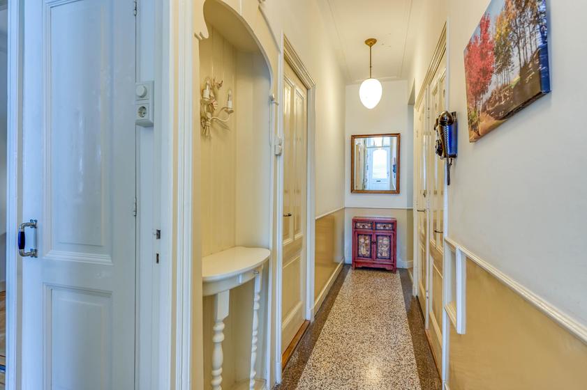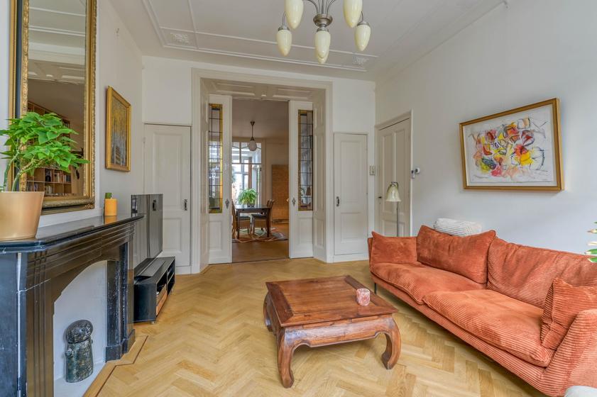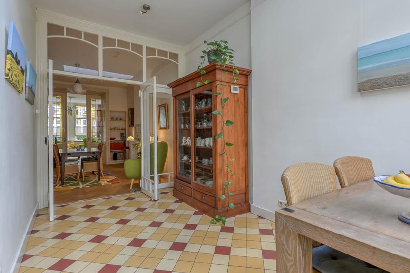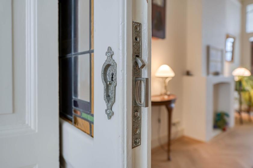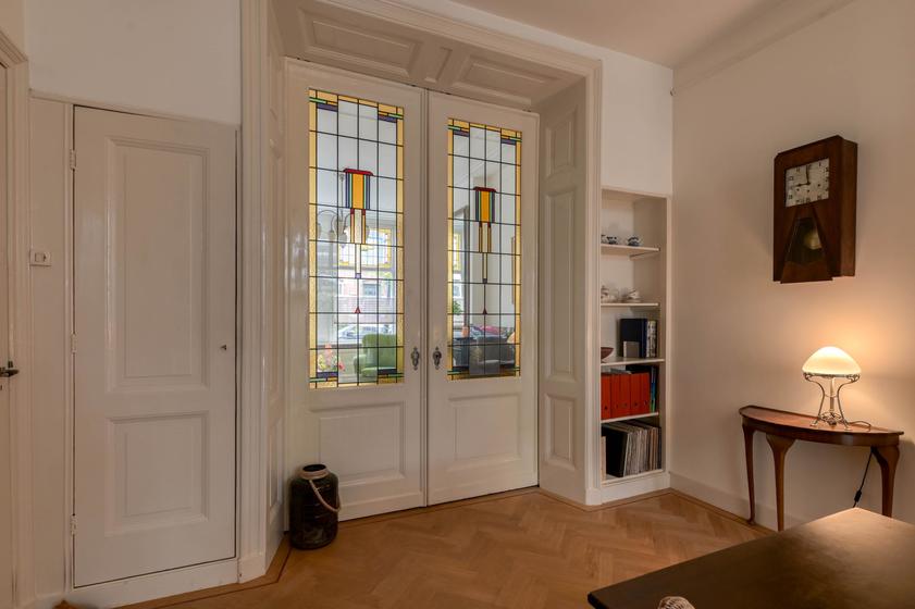 STIJLDETAILS Mooie stijlelementen uit de bouwperiode zijn bewaard gebleven: hoge plafonds (circa 3.10m ), schoorsteenmantel, paneeldeuren, deurbeslag, kastenseparatie met glas-in-loodschuifdeuren, granitovloer.