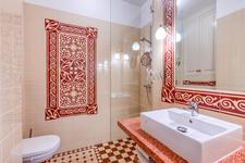 INDELING EERSTE VERDIEPING Overloop, de badkamer en de hoofdslaapkamer met openslaande deuren naar het balkon met middag- en avondzon. De badkamer is modern uitgevoerd met een inloopdouche, wc, wandkast en een wastafel met -bladen.