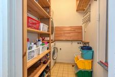 INDELING BEGANE GROND Voordeur, vestibule, vestibuledeur, gang met een trapkast met de elektrische installatie, de wc-ruimte met fontein, een kelderkast en een grote berg-/werkkast met de wasmachineaansluiting en een uitstortgootsteen.