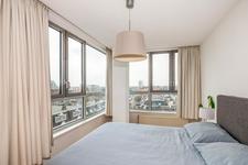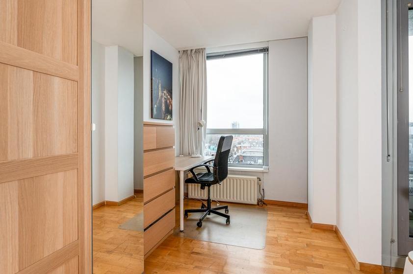 De hoofdslaapkamer 1 ligt op de hoek. Werk-/slaapkamer 2 heeft een deur naar de loggia.