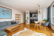 A nice and very bright two bedroom apartment with south east facing loggia. We have on offer a nice lateral apartment on the 6th floor of an apartment building on the edge of Zeeheldenkwartier, Duinoord and Zorgvliet. It comes with a (bike) storage and a parking space. For English see Funda English
