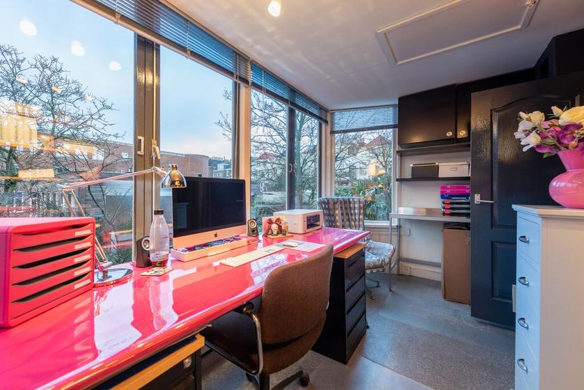 SERRE Aan de achterzijde is een fraaie woning-brede serre. Ideaal om in te richten als werk-/studieruimte of als slaapvertrek. In de kast is de opstelplaats voor de Cv-ketel Vaillant. De serre vangt middag- en avondzon en biedt zicht op achtertuinen en het schoolcomplex.