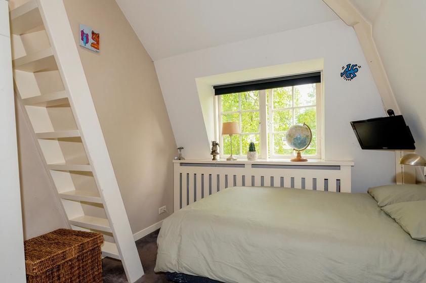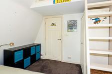Trap naar de EERSTE VERDIEPING. Overloop en aan de voorzijde slaapkamer 2 met twee grote ramen.