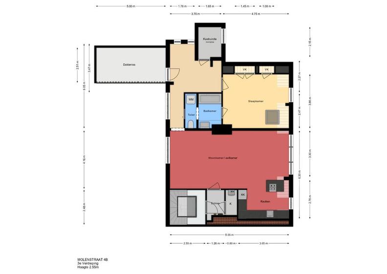 DERDE VERDIEPING Eigen voordeur, halletje met een diepe kast met de opstelplaats Cv-ketel.
