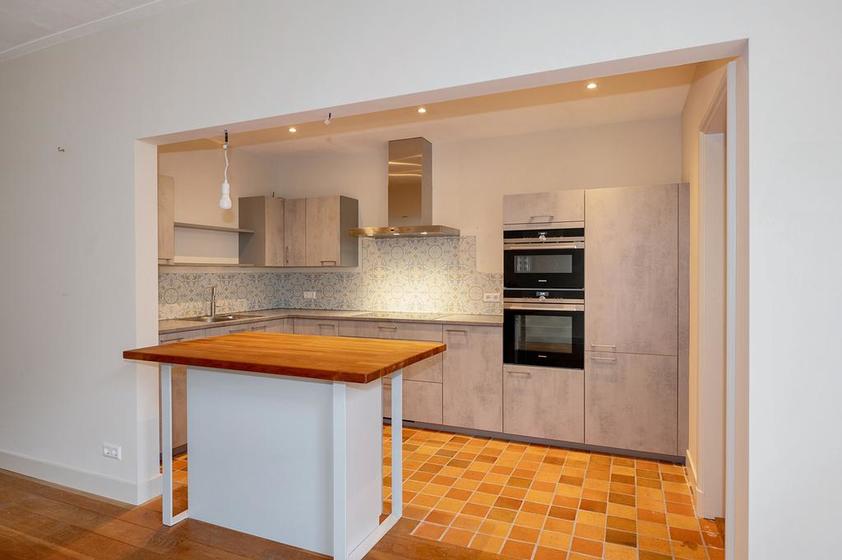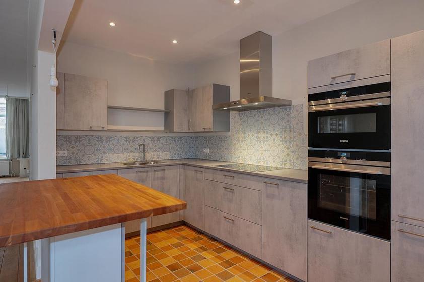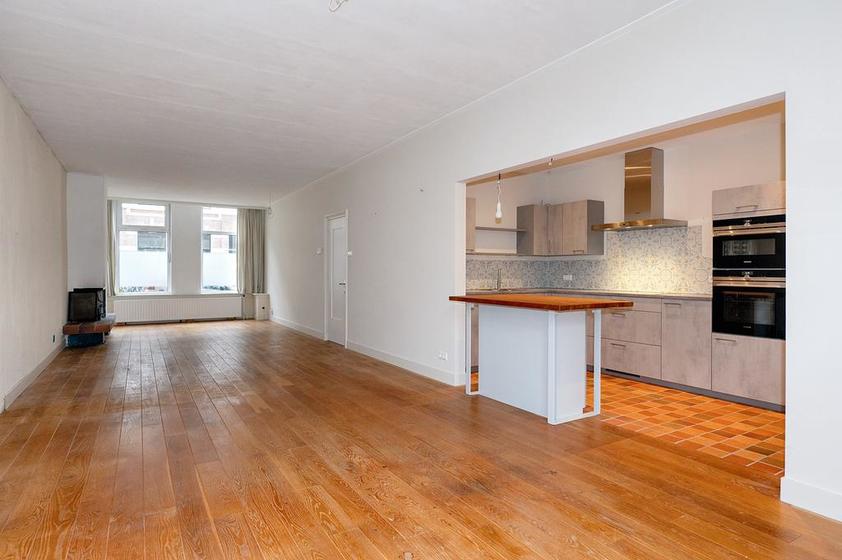 De royale woonkamer (circa 1300x385) heeft een fraaie lamelparketvloer en een schuifpui naar de achtertuin. De keukenruimte is in open verbinding met de woonkamer en is ingericht met een eigentijdse L-vormige opstelling met een (inbouw-)Siemens vaatwasser, Siemens inductiekookplaat, Siemens magnetron, Siemens heteluchtoven, een koel-/vriescombinatie en een Quooker. Vanuit de keuken toegang tot een bijkeuken met de wasmachineaansluiting.