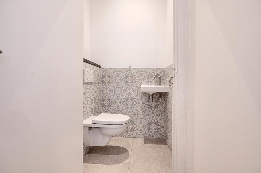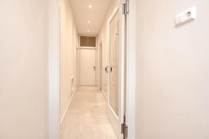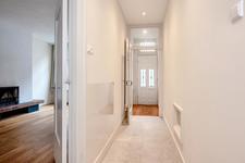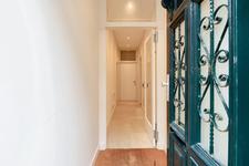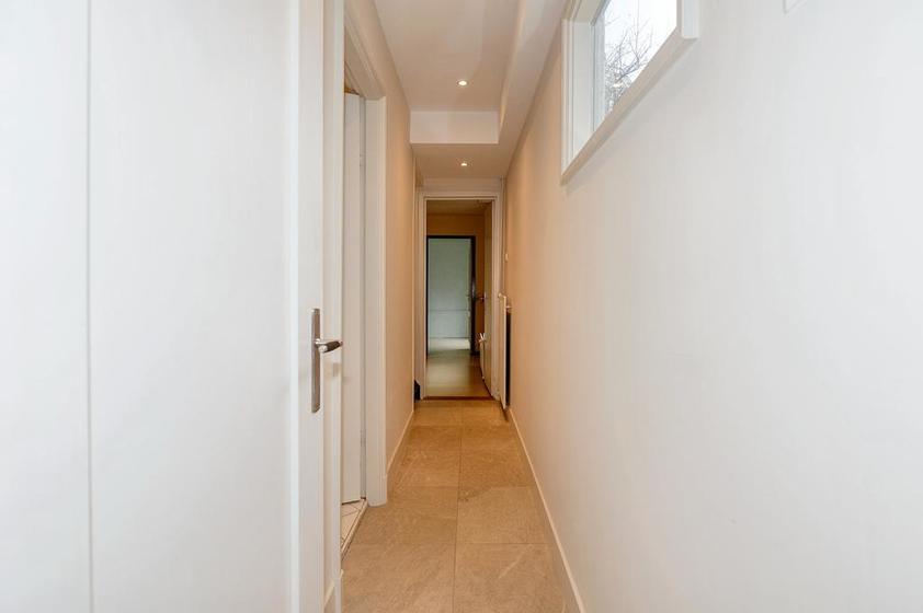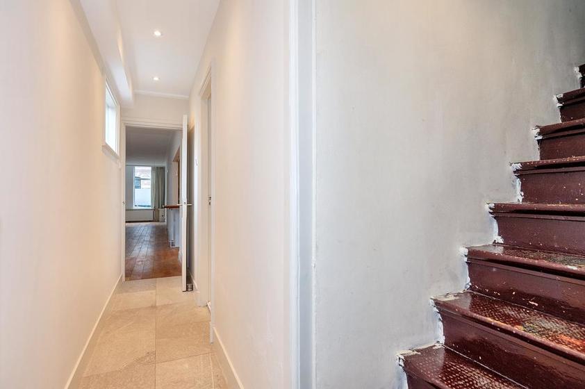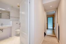 Voordeur, gang met de modern ingerichte wc-ruimte met fontein, alsmede een ruime trapkast met de elektrische installatie en de opstelplaats voor de Cv-ketel.