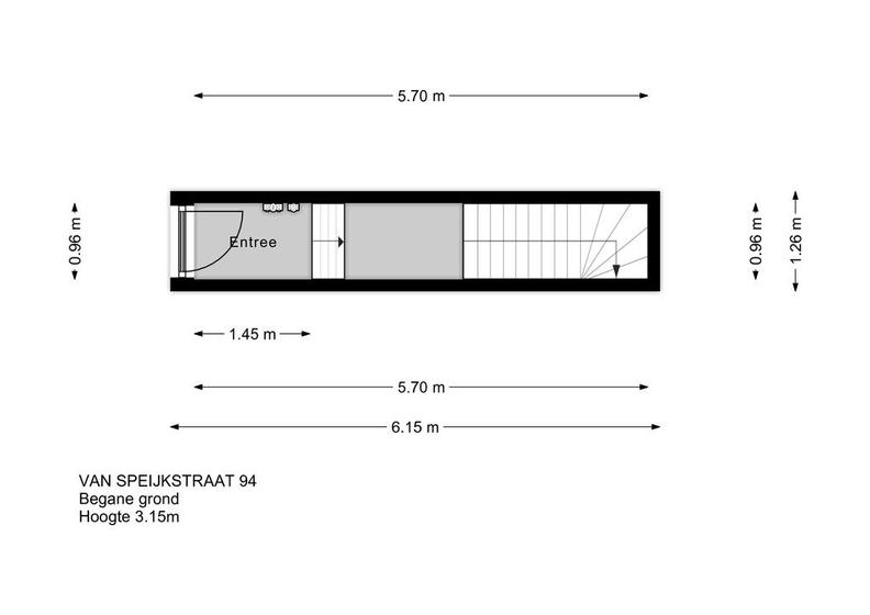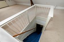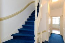 Entree op staatniveau, trap naar overloop op eerste etage.
