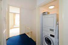 TWEEDE VERDIEPING. Overloop met een wc-ruimte en een vaste kast met een wasmachineaansluiting.