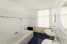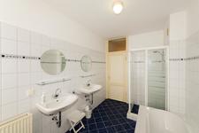 Aan de achterzijde: een slaapkamer met vaste kast, een doorloop naar de voorkamer en openslaande deuren naar het terras. Ruim en zonnig terras (zuidoosten) over de volle breedte. Badkamer met ligbad, douche en dubbel wastafel.