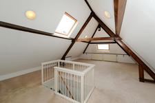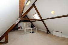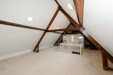 KAPVERDIEPING Grote, open, zolderkamer met vaste wastafel, opstelplaats cv-ketel en twee dakramen. Slaapkamer aan de achterzijde.