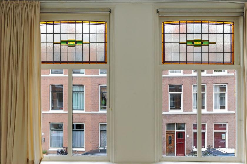Zeer ruim en goed onderhouden dubbel bovenhuis met terras en kapverdieping. Sfeervol door de bewaarde details uit de bouwperiode: zoals schuifseparatie, natuurstenen schoorsteenmantels, ornamenten plafonds en glas-in-lood. Ruime en lichte kamers, verdeeld over drie bouwlagen. TERRAS grenzend aan de hoofdslaapkamer aan de achterzijde.