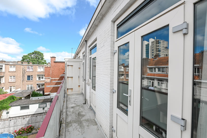 BALKON Aan de achterzijde ligt het zonnige balkon, met een balkonkast en uitzicht op de rustige binnentuinen. Een fijne plek om te genieten van de ochtend- en middagzon.
