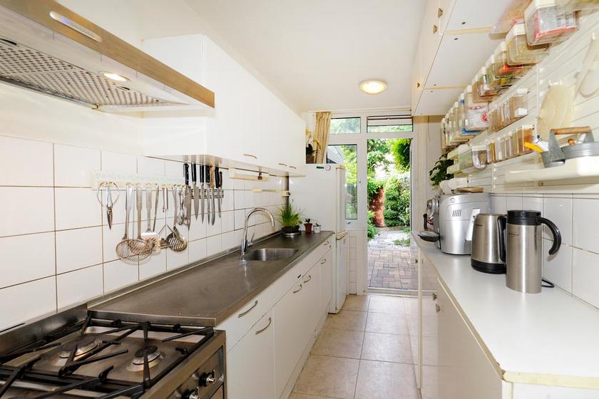 Een praktisch ingedeelde benedenwoning met aangebouwde SERRE, twee slaapkamers en een prachtige, zonnige ACHTERTUIN (zuidwesten) met veel privacy en een ACHTERINGANG.