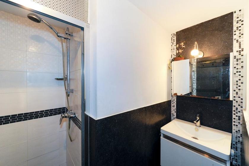 BADKAMER De badkamer is bereikbaar via de achter-slaapkamer en ingericht met een douche en wastafelmeubel.