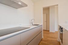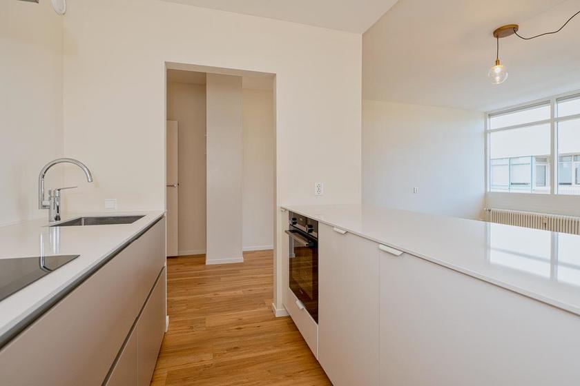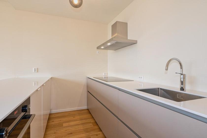 LAY-OUT Entrance hall, hallway with toilet and meter cupboard. Living/dining room with an open-plan kitchen. A door open unto the southwest facing balcony which catches the afternoon sun. The contemporary kitchen is fitted with a (Siemens built-in)oven, dishwasher, induction cooker, ventilation hood and beautiful worktop. At the back of the building you will find the bedroom with a deep cupboard and access to the stylish bathroom with walk-in shower, radiator and sink.