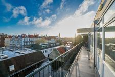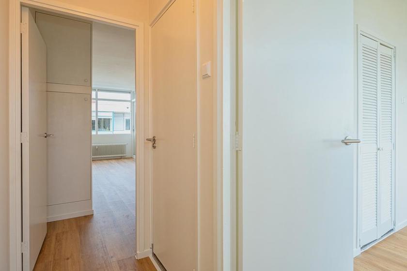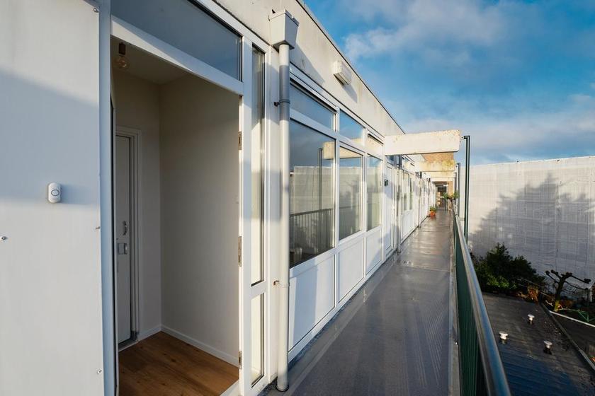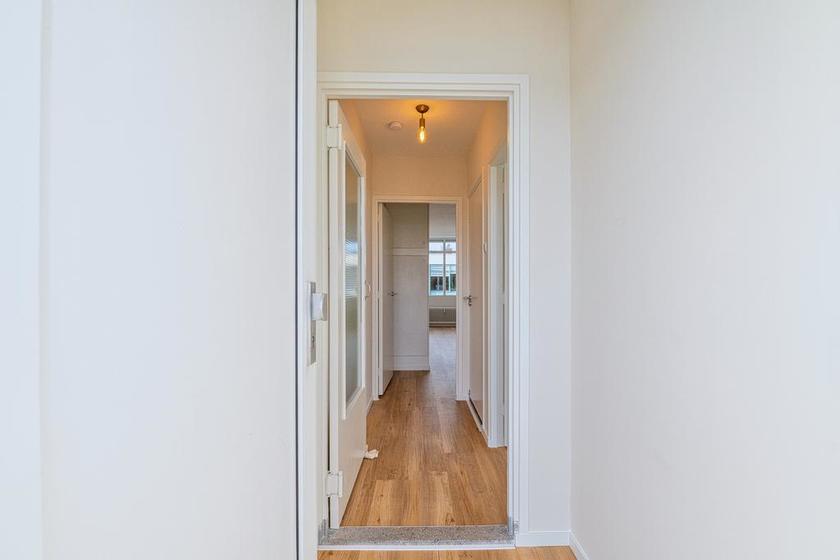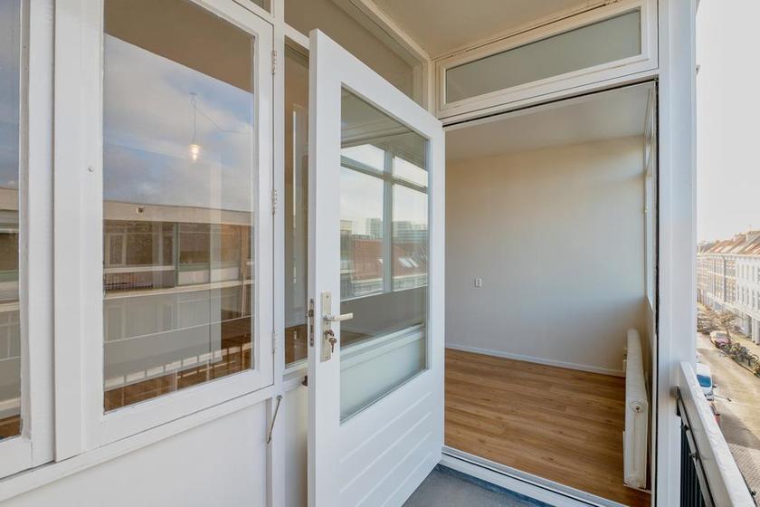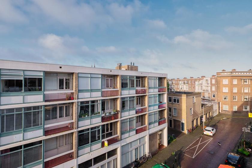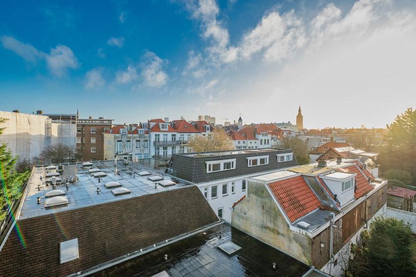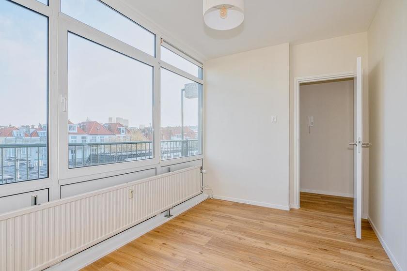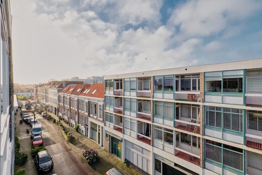 ENTREE: hoofdentree via gesloten hal met brievenbussen- en bellentableau, trappenhuis naar woonlaag, gaanderij naar eigen voordeur. Vanaf deze plek een fantastisch uitzicht op onder meer panden in het Zeeheldenkwartier en de Haagse binnenstad.