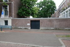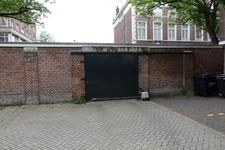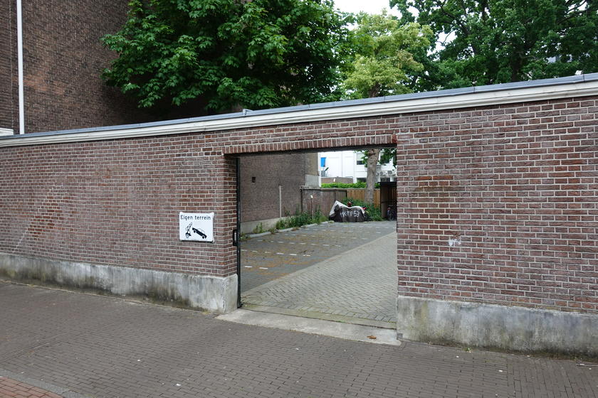 De beveiligde toegangsdeur, naar het afgesloten terrein, is aan de Amaliastraat.