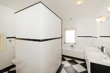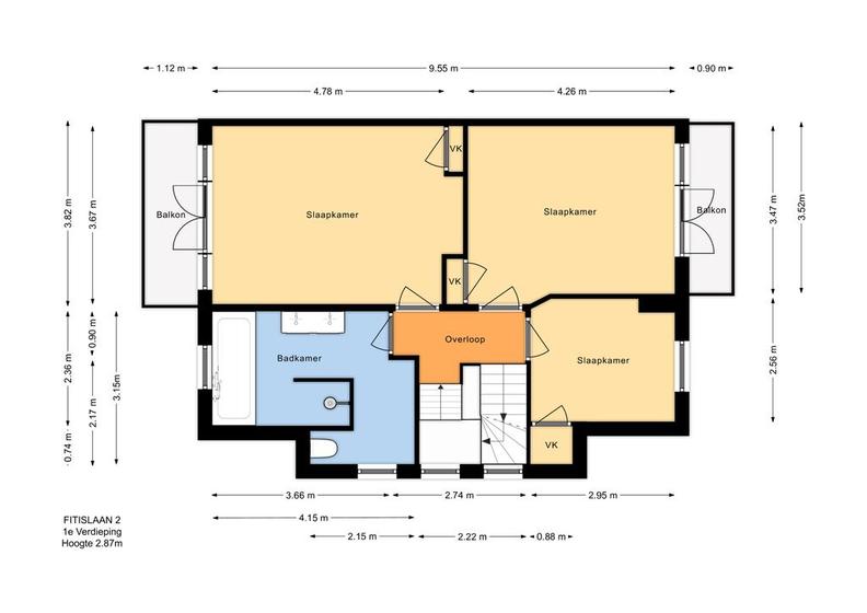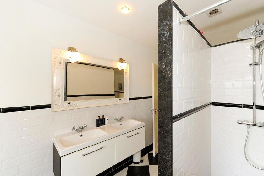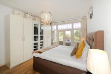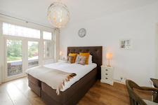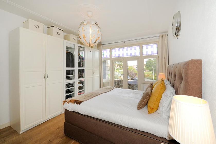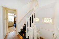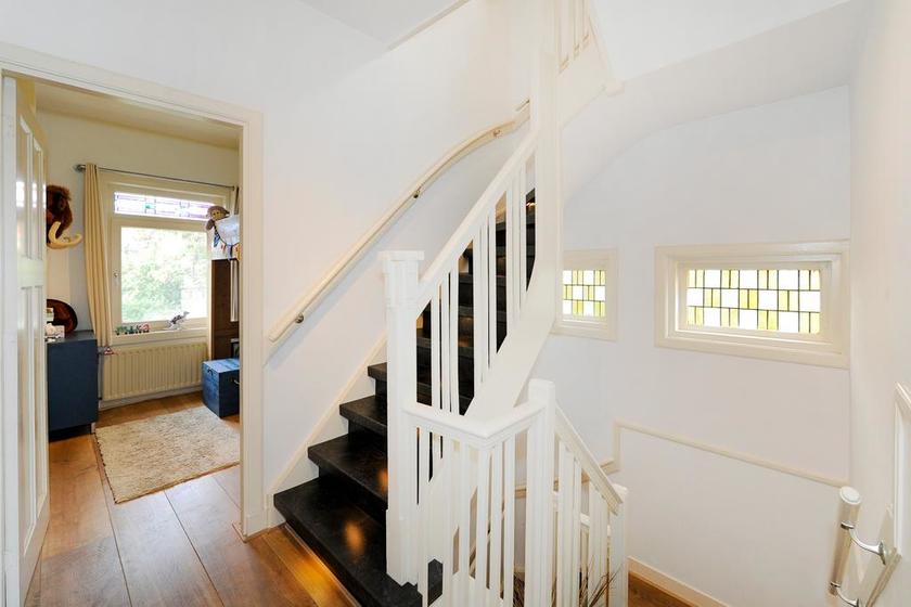 EERSTE VERDIEPING Overloop. Ruime voorslaapkamer met vaste kast en openslaande deuren naar het balkon. Vanaf het balkon weids uitzicht over het groene Fazantplein met op de achtergrond de nieuwbouw van de Heldringschool. Aan de achterzijde: een slaapkamer met vaste kast en balkon en een zijkamer, wederom met vaste kast. Royale badkamer met ligbad, inloopdouche, dubbele vaste wastafel en een -goed verstopte- wc. Bordestrap, met dezelfde afwerking als de eerder genoemde trap, naar de tweede etage.