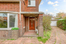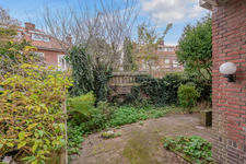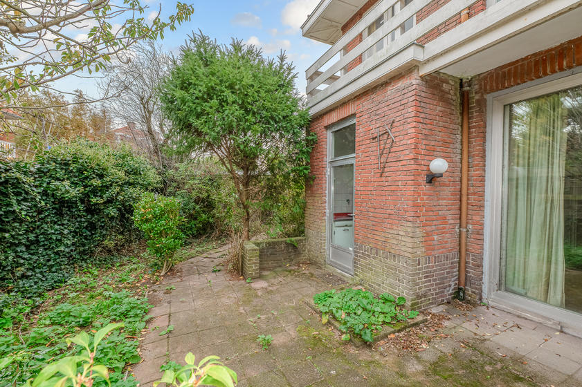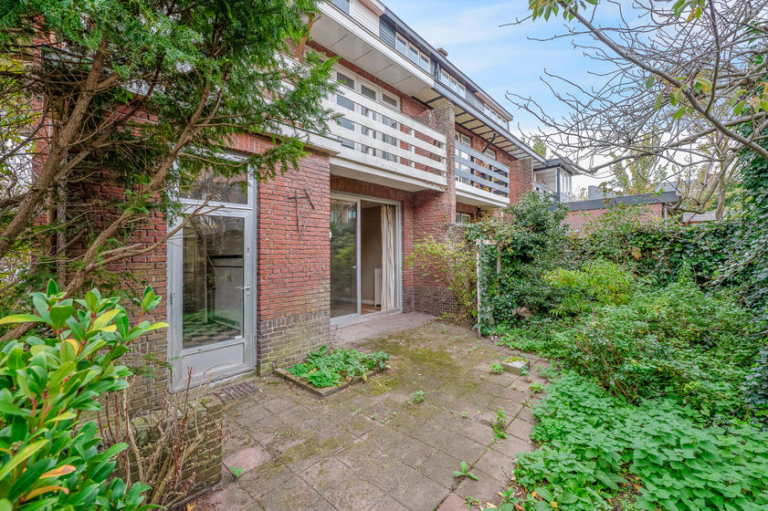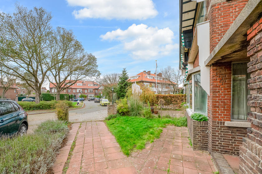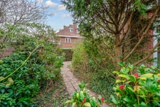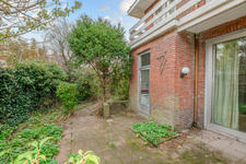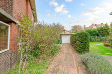 Het gaat om een groot perceel (286m2). De woning heeft aan drie zijden tuin. De voortuin ligt op het westen, de zij-tuin op het zuiden, de achtertuin op oosten.