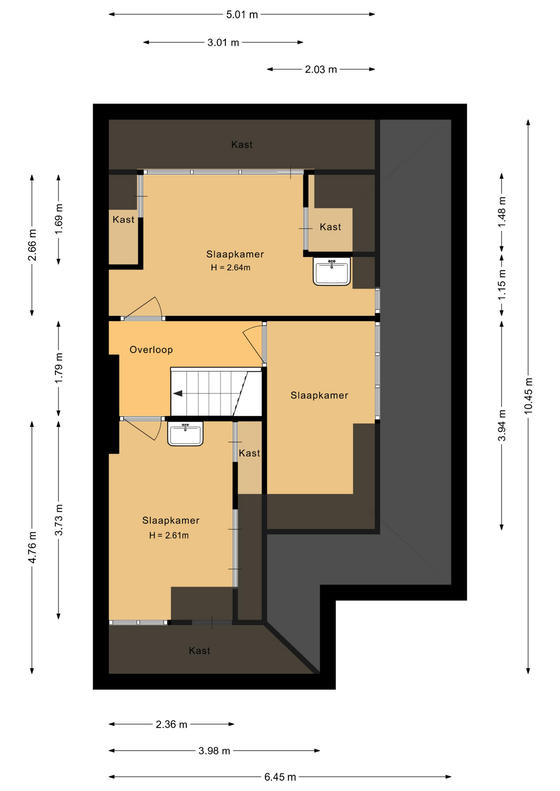 Overloop met toegang tot de andere drie slaapvertrekken.