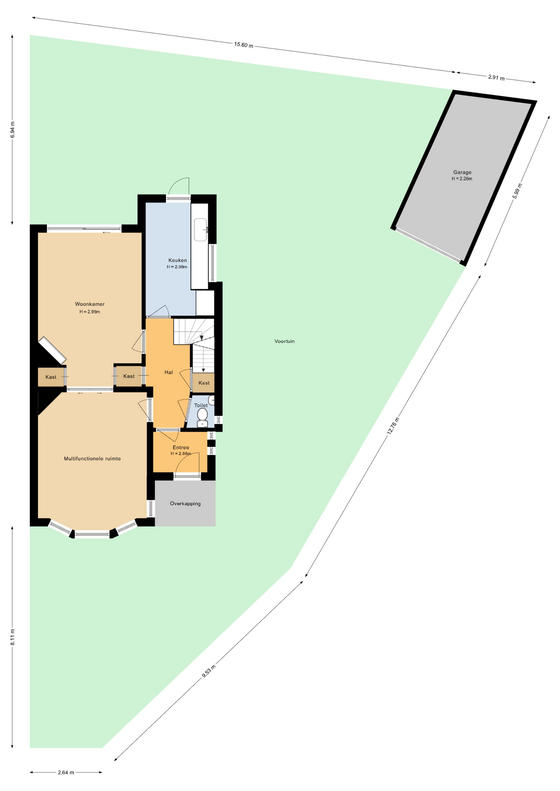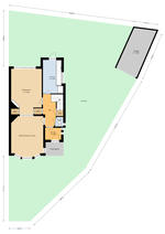 Achterin de tuin is de garage. De genoteerde afmetingen zijn indicatief.