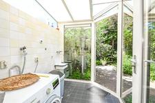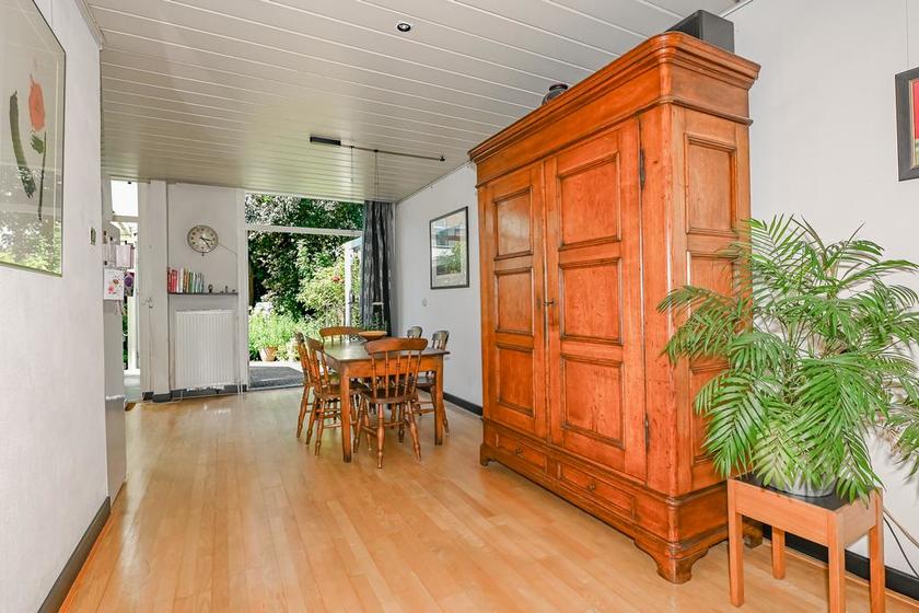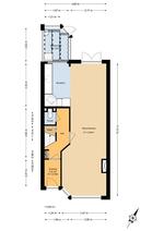 BEGANE GROND Voordeur, vestibule, vestibuledeur, gang met meterkast en de wc-ruimte. Een doorgebroken zit-/eetkamer met openslaande deuren naar de achtertuin. De keukenruimte is in open verbinding met woonkamer en is ingericht met een L-vormige keukenopstelling. Achter de keukenruimte is een serre-achtige bijkeuken met de wasmachineaansluiting en een uitstortgootsteen.