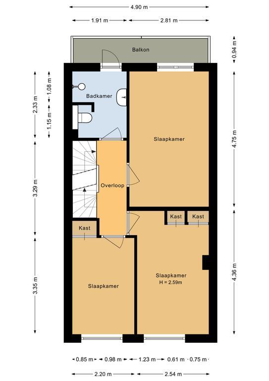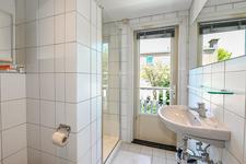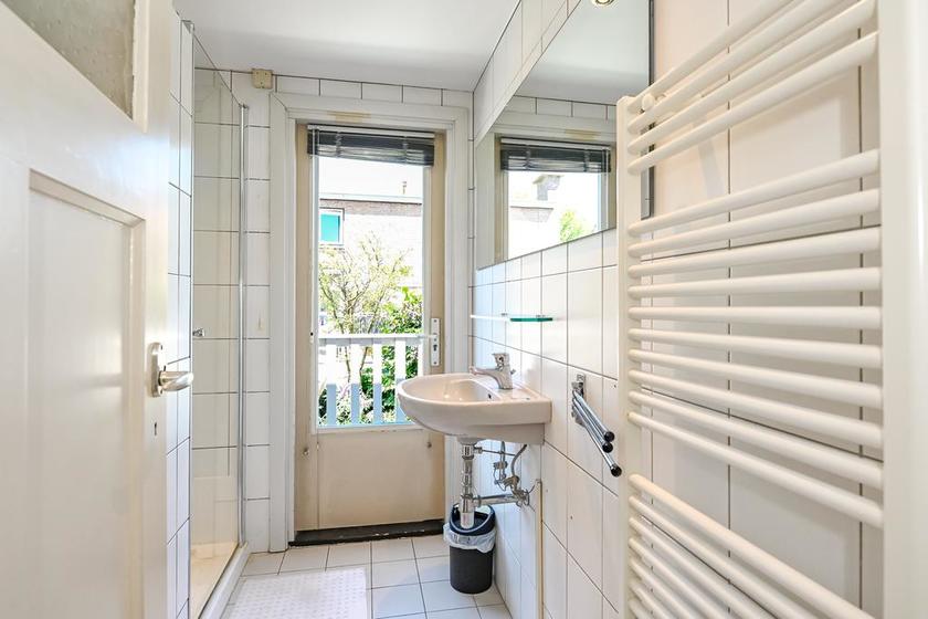 EERSTE VERDIEPING Overloop. Twee slaapkamers met vaste kast(en) aan de voorzijde. De hoofdslaapkamer is aan de achterzijde. De badkamer biedt toegang het balkon en is voorzien van een wc, wastafel, designradiator en douche. Het balkon ligt op het noordwesten.