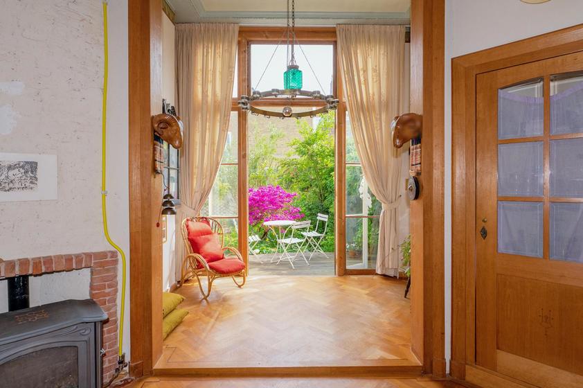 Drie stijlvolle kamers en suite: de zitkamer, de royale eetkamer met hoekkast en de serre met openslaande deuren naar de achtertuin. De hoge (circa 3.75m) sierplafonds, de visgraatparketvloer, de suiteseparatie, de raampartijen met luiken en vensterbanken zorgen voor veel sfeer.