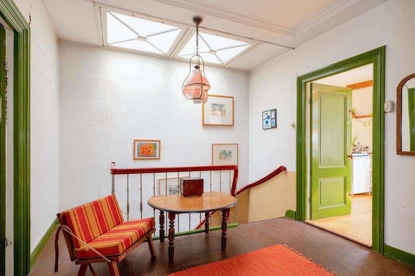 Overloop met de wc-ruimte. Aan de straatzijde een ruime slaapkamer met toegang naar de zijkamer.