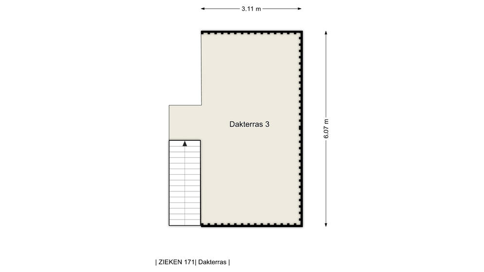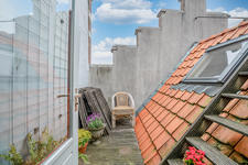 Het dak(terras) is bereikbaar via een buitentrap. Het biedt een geweldig uitzicht over rondom gelegen woonwijken, de Haagse binnenstad en een diversiteit aan bebouwing. Thans in gebruik als opstelplaats voor de zonnepanelen.
